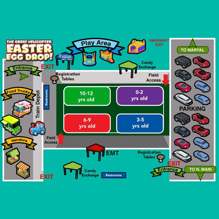 Compass Church presents The Great Helicopter Easter Egg Drop! The sky diving bunny returns this year with double the excitement! Your family gets to choose from two exciting egg drops. Drop #1 at 9:30am or Drop #2 at 11:30am. Doors open at 8am. Families must pre-register to attend - one drop per family, limited to ages 12 and under.